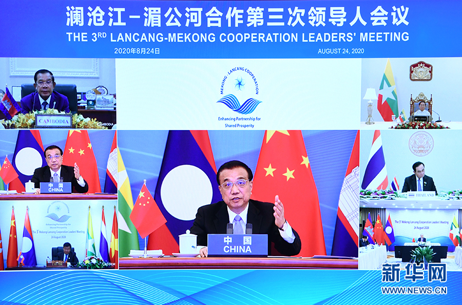 8月24日,國務(wù)院總理李克強(qiáng)在北京人民大會(huì)堂出席瀾滄江-湄公河合作第三次領(lǐng)導(dǎo)人視頻會(huì)議。李克強(qiáng)和老撾總理通倫共同主持會(huì)議。柬埔寨首相洪森、緬甸總統(tǒng)溫敏、泰國總理巴育、越南總理阮春福出席。 新華社記者 饒愛民 攝