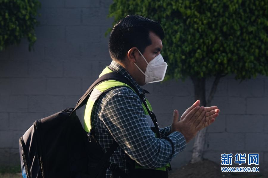 11月14日,在墨西哥首都墨西哥城,一名男子戴口罩出行。