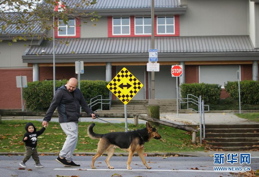 11月15日,在加拿大不列顛哥倫比亞省薩里,居民從一所因出現(xiàn)新冠疫情關閉的學校前走過。新華社發(fā)(梁森攝)