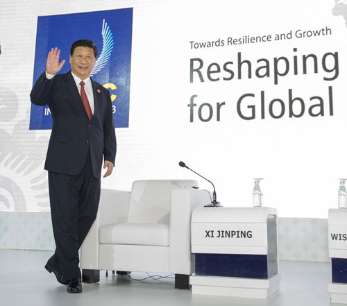 2013年10月7日,國(guó)家主席習(xí)近平在印度尼西亞巴厘島出席亞太經(jīng)合組織工商領(lǐng)導(dǎo)人峰會(huì),并發(fā)表《深化改革開(kāi)放共創(chuàng)美好亞太》的重要演講。新華社記者 李學(xué)仁 攝