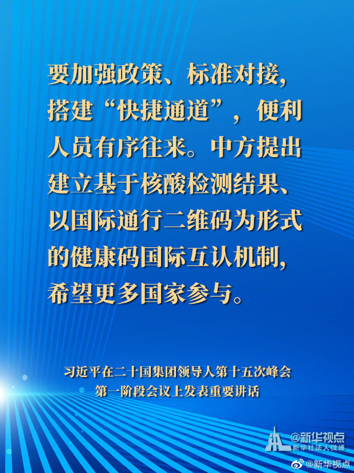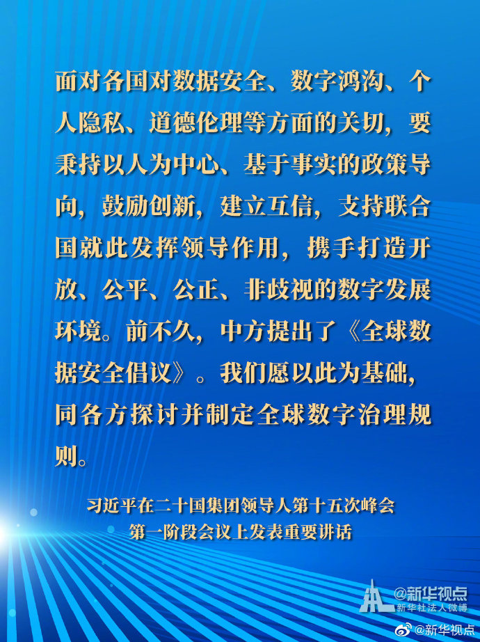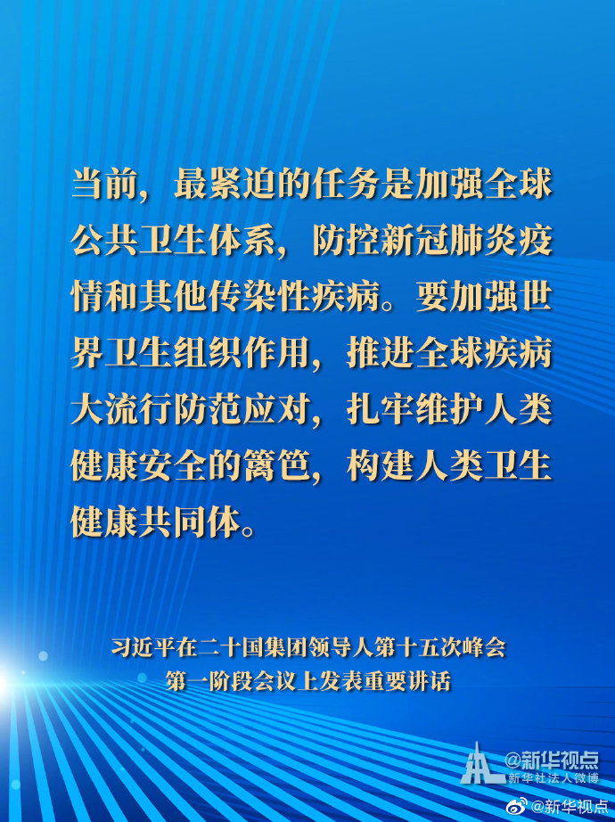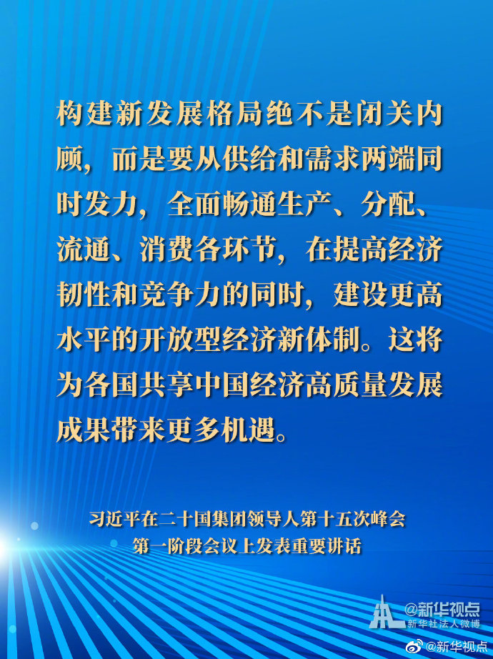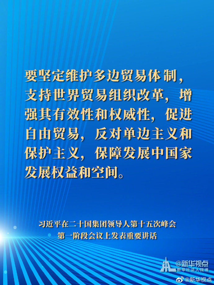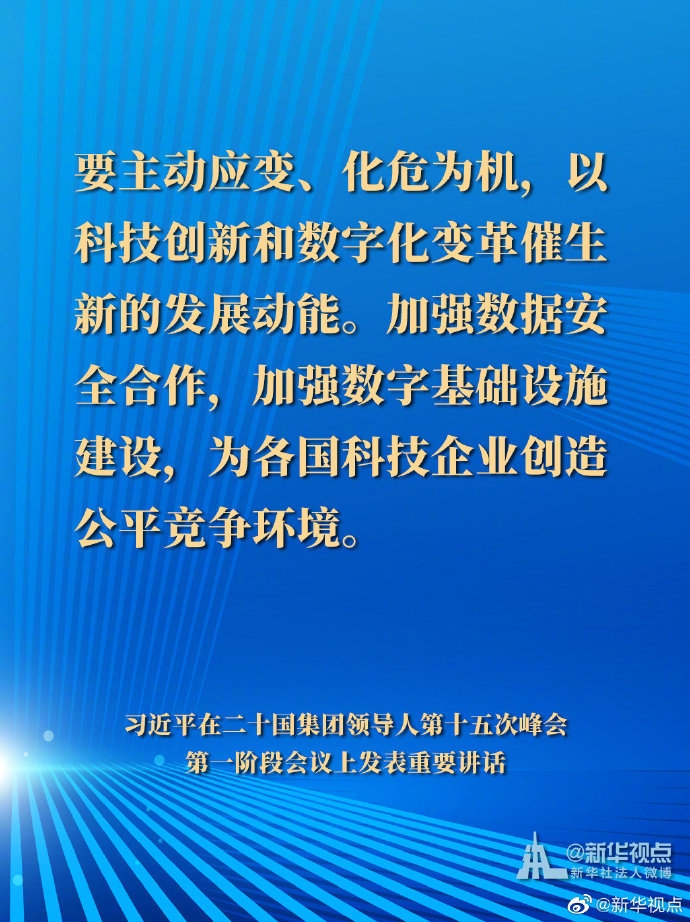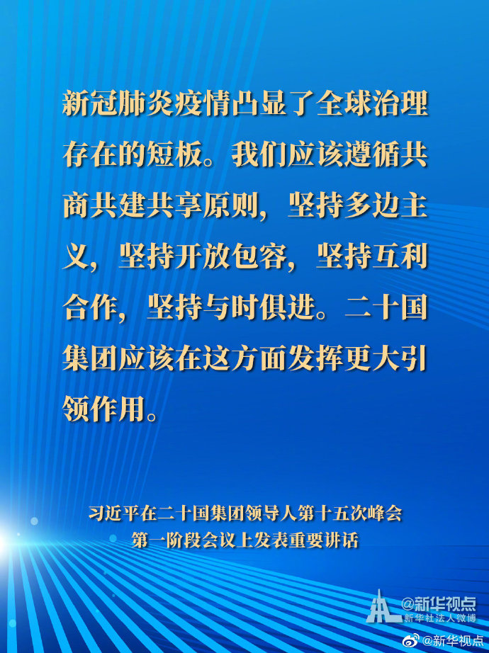 習(xí)近平在二十國集團領(lǐng)導(dǎo)人第十五次峰會第一階段會議講話要點