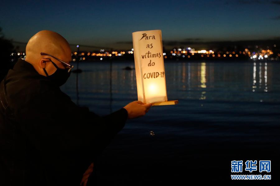 11月30日,在巴西首都巴西利亞,一名男子往湖中放入水燈,上面用葡萄牙文寫著“獻(xiàn)給新冠逝者”。新華社發(fā)(盧西奧·塔沃拉攝)