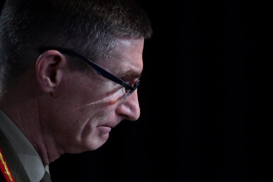 11月19日,在澳大利亞堪培拉,澳國防軍司令安格斯·坎貝爾公布調查報告。報告證實共有25名澳現(xiàn)役或前國防軍人員涉嫌在阿富汗參與殺害囚犯和平民,建議對其中19人展開刑事調查。(新華社/法新)