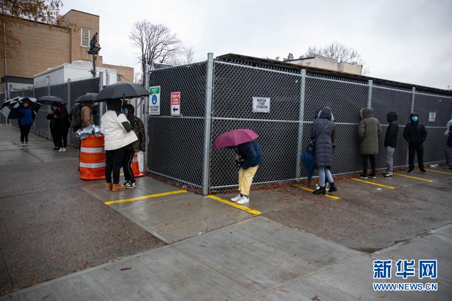 12月14日,在美國(guó)紐約,人們?cè)谝惶幮鹿跈z測(cè)點(diǎn)排隊(duì)檢測(cè)。新華社發(fā)(郭克 攝)