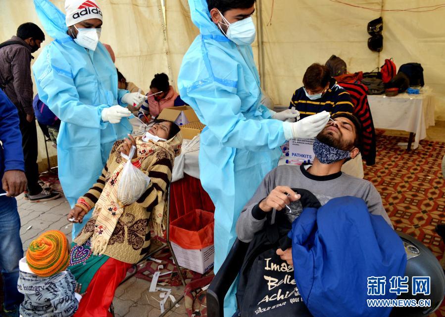 12月19日,乘客在印度德里一處巴士終點站接受新冠病毒檢測取樣。新華社發(fā)(帕塔·薩卡爾攝)