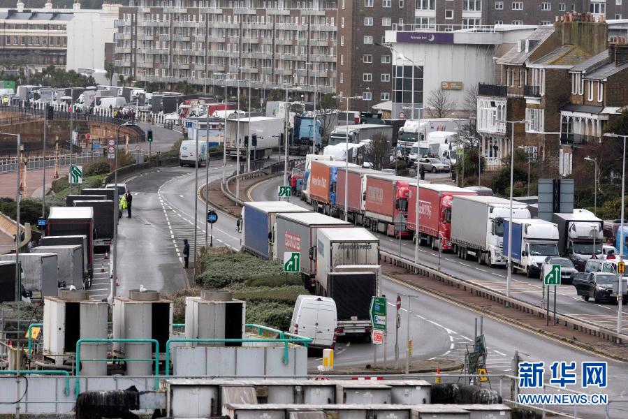此前,為應(yīng)對英國近期出現(xiàn)的變異新冠病毒,法國宣布從當?shù)貢r間20日午夜起48小時內(nèi)禁止來自英國的所有人員旅行,包括與公路、鐵路、航空、水路有關(guān)的貨運人員旅行。這給英國與歐盟國家之間的貨物運輸帶來極大影響。自邊境關(guān)閉以來,大約有2850輛卡車被困在英國肯特郡。