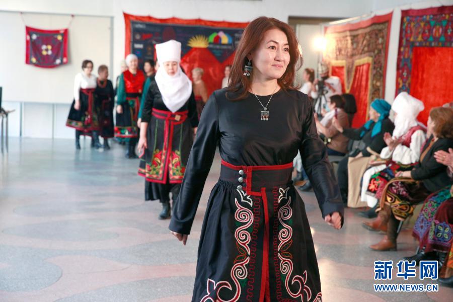 當(dāng)日,吉爾吉斯斯坦首都比什凱克的國家美術(shù)館內(nèi)舉行傳統(tǒng)手工藝品比賽,其中裙袍大賽引人關(guān)注。裙袍是吉爾吉斯族的傳統(tǒng)服飾,它看起來像一條擺裙,一般穿在連衣裙或背心外面。裙袍的剪裁、顏色和圖案能夠反映女性的地位和狀況。