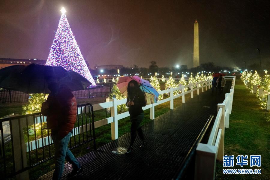 12月24日,人們在美國華盛頓白宮南側(cè)的國家圣誕樹區(qū)域游覽。
