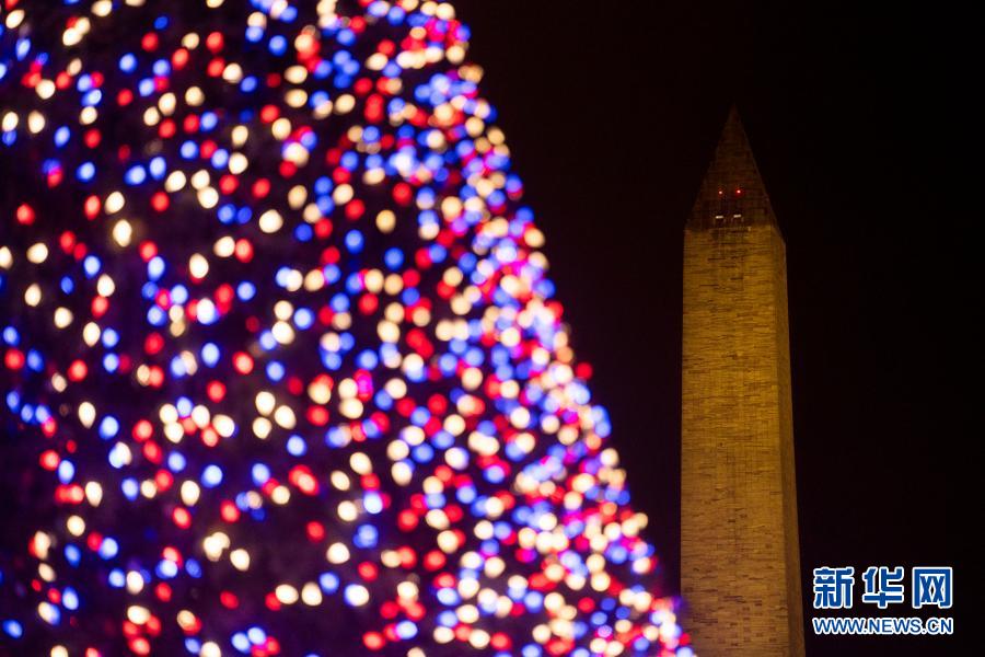 這是12月24日在美國華盛頓拍攝的華盛頓紀(jì)念碑和國家圣誕樹。