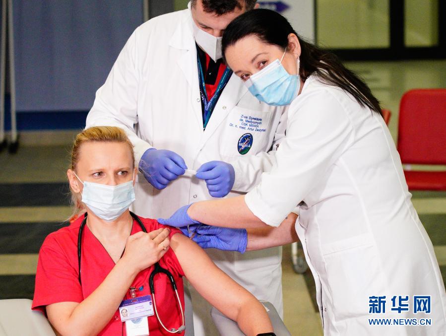 12月27日,在波蘭首都華沙一家醫(yī)院,一名醫(yī)生接種新冠疫苗。