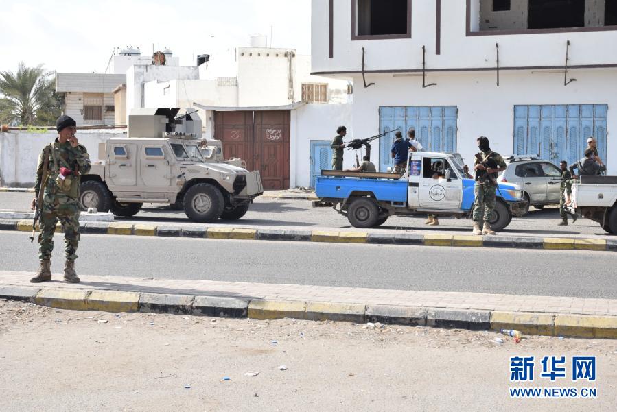12月30日,在也門亞丁,政府軍士兵在爆炸后封鎖了亞丁國際機場的入口。新華社發(fā)(穆拉德·阿卜杜攝)