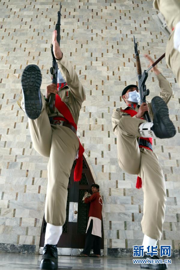 3月23日,巴基斯坦軍人在位于卡拉奇的國父真納墓參加“巴基斯坦日”紀(jì)念活動(dòng)。