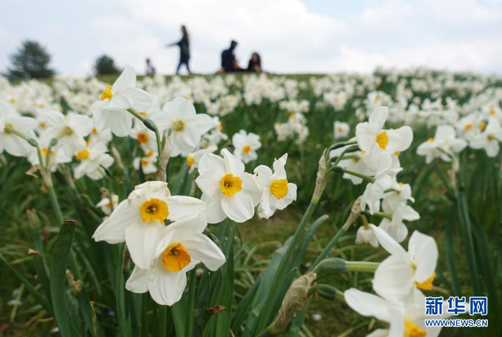 4月21日,法國巴黎一處公園的山坡上鮮花盛開。
