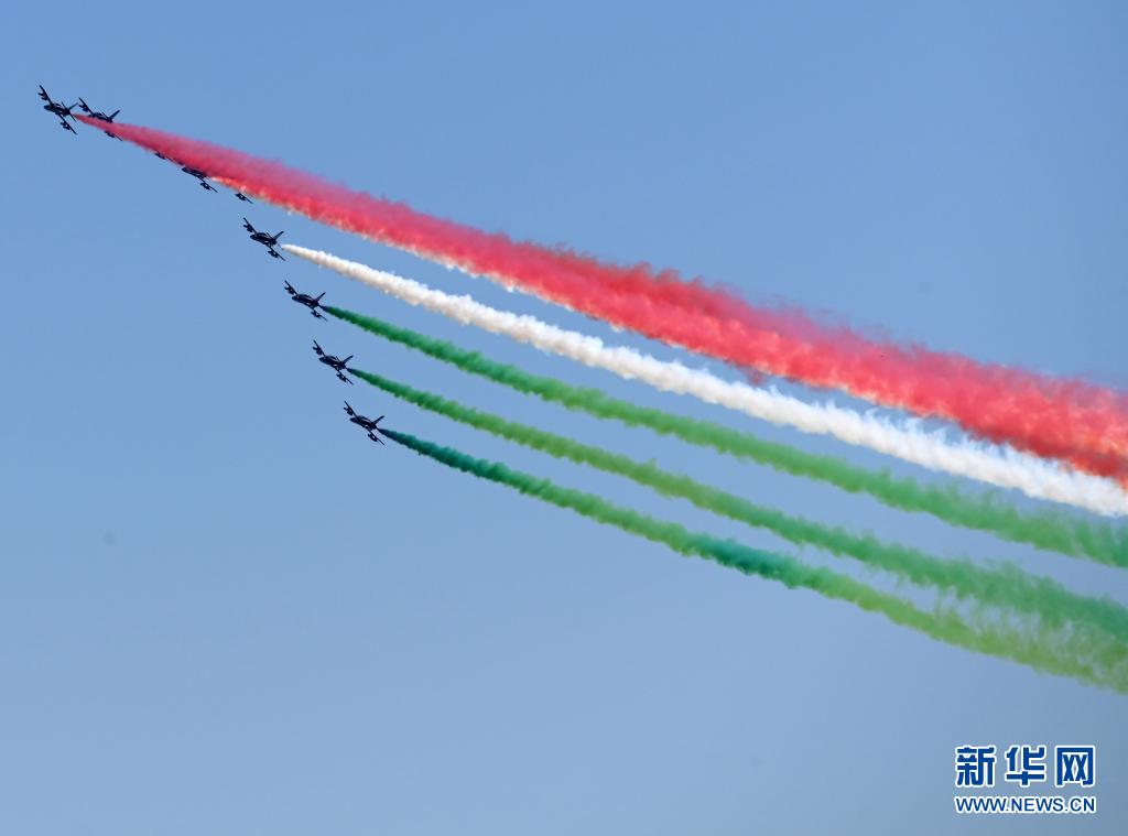 4月25日,意大利“三色箭”飛行表演隊(duì)在羅馬舉行的紀(jì)念儀式上噴出代表意大利國(guó)旗顏色的紅白綠三色煙霧。