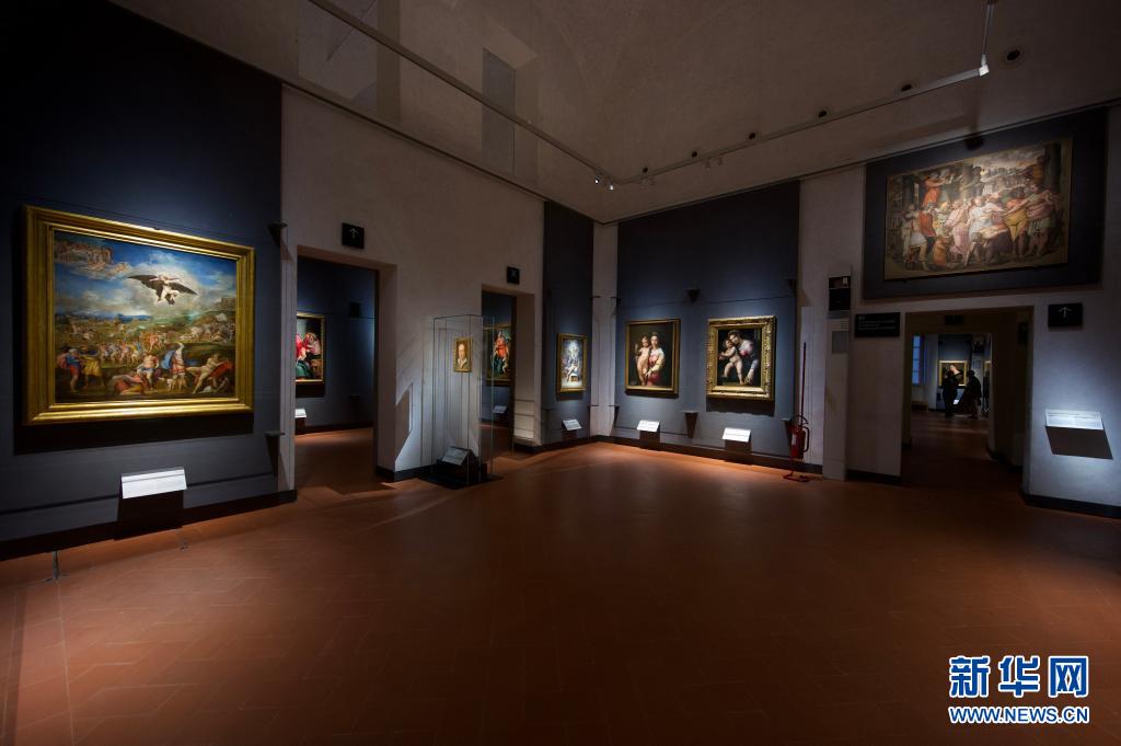 這是5月4日在意大利佛羅倫薩拍攝的烏菲齊美術(shù)館內(nèi)的展室。當(dāng)日,意大利烏菲齊美術(shù)館重新開放。美術(shù)館改建了售票處和接待處,以避免排隊(duì),并開設(shè)了十四個新展室。新華社發(fā)