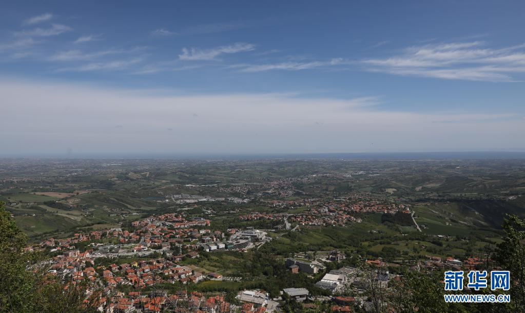 這是5月6日在圣馬力諾城中拍攝的遠(yuǎn)處的亞得里亞海。