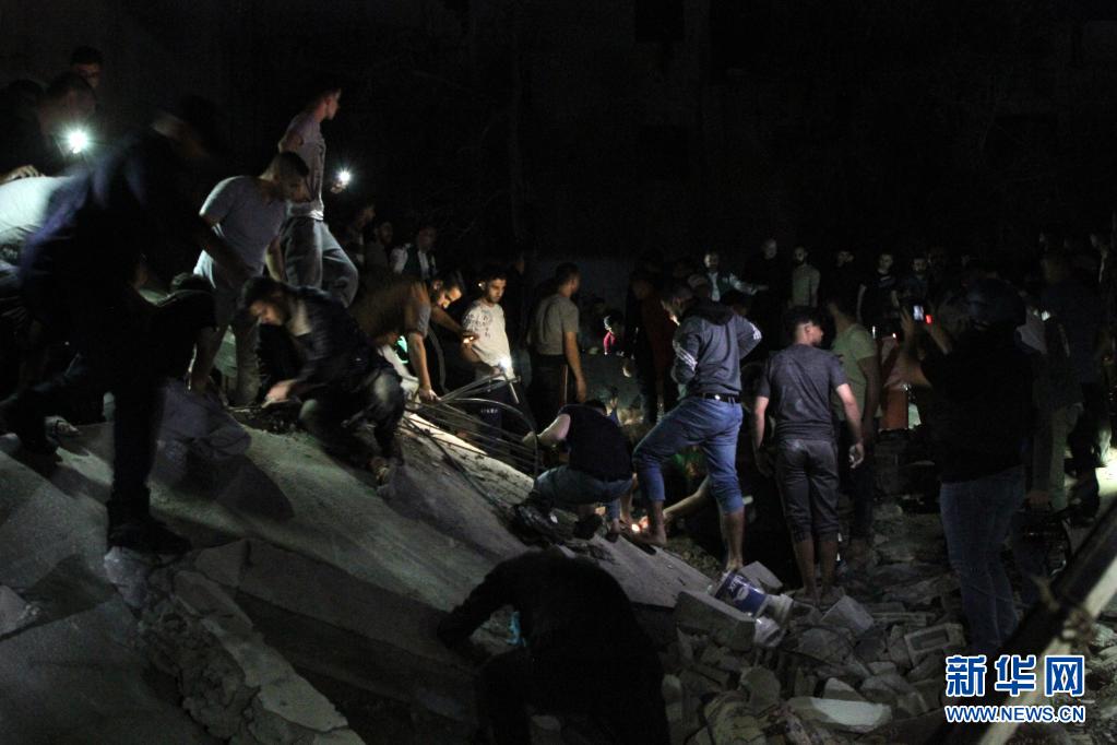 5月15日,人們聚集在加沙城一處遭空襲的難民營(yíng)。