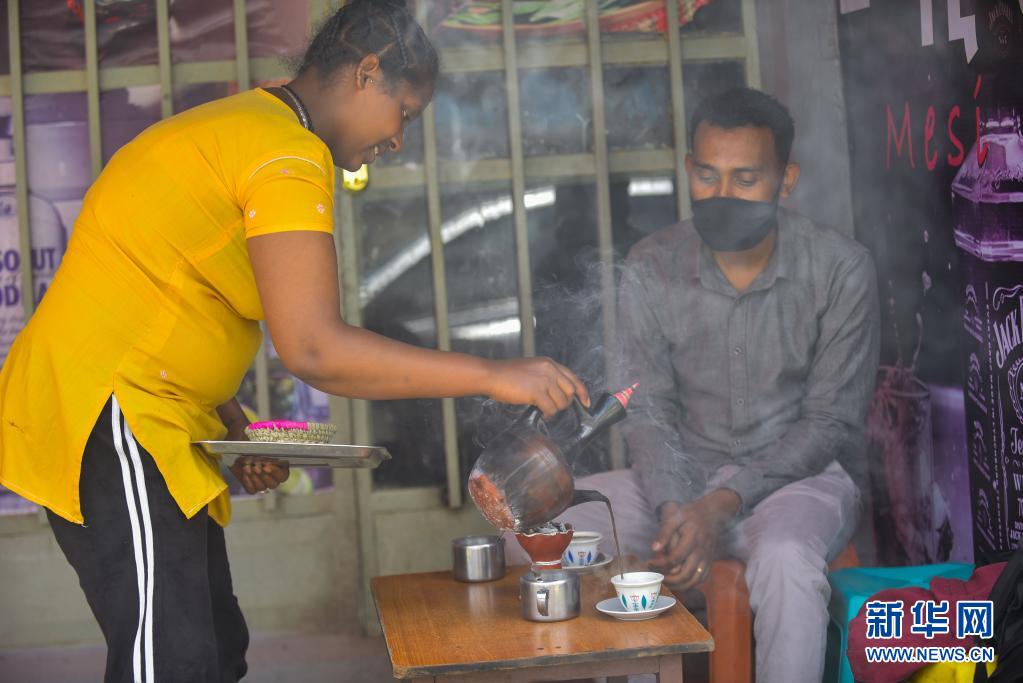 埃塞俄比亞有“咖啡的故鄉(xiāng)”之稱,是世界上重要的咖啡生產(chǎn)國(guó)。許多當(dāng)?shù)乜Х葠酆谜呦矚g和親友聚在一起,花上數(shù)個(gè)小時(shí)品嘗咖啡,邊喝邊聊。近來,越來越多的年輕女性看到了咖啡行業(yè)的商機(jī),她們?cè)趤喌乃箒嗀惏偷却蟪鞘械慕诸^開起咖啡攤,為顧客送上香醇、平價(jià)的咖啡。新華社發(fā)(邁克爾·特韋爾德攝)