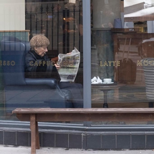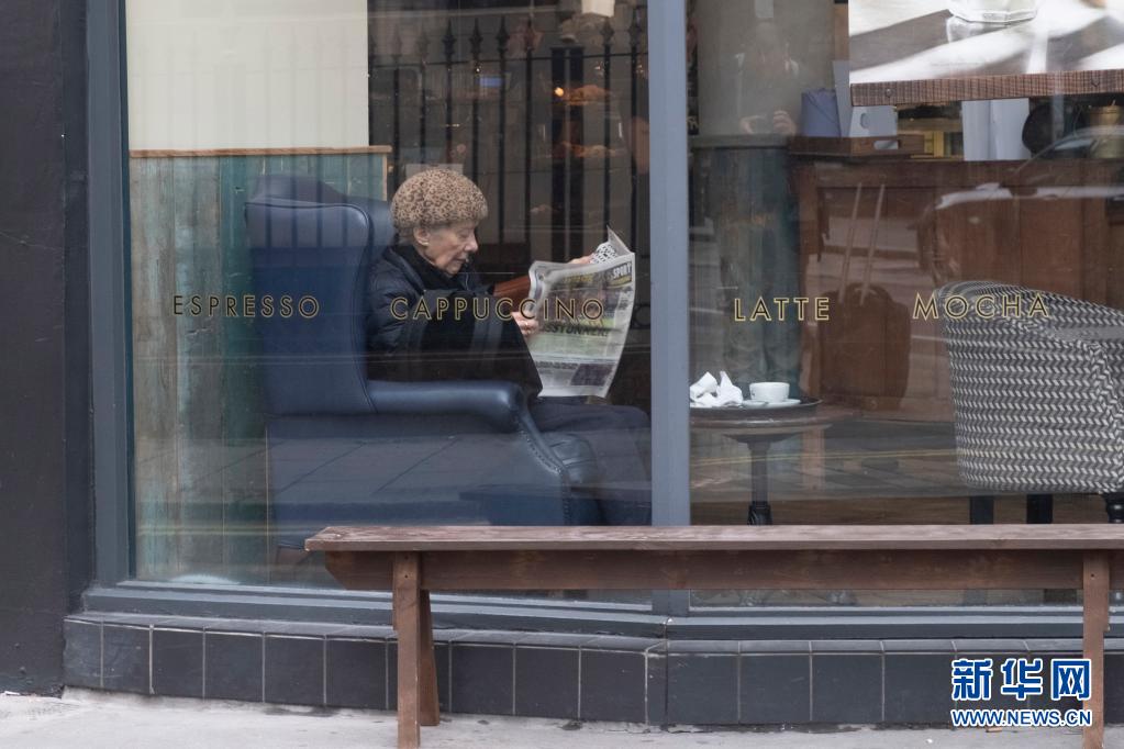 5月17日,一名顧客在英國(guó)倫敦一家咖啡館看報(bào)。