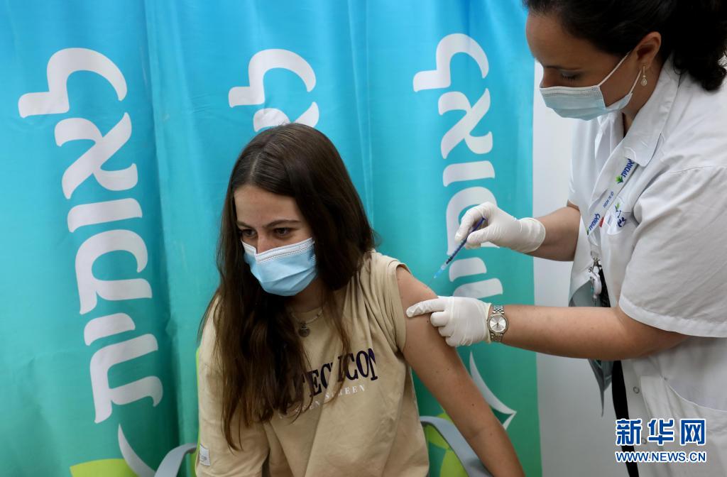 6月22日,在以色列中部城市莫迪因的一處醫(yī)療保健服務站內(nèi),一名未成年人接種新冠疫苗。