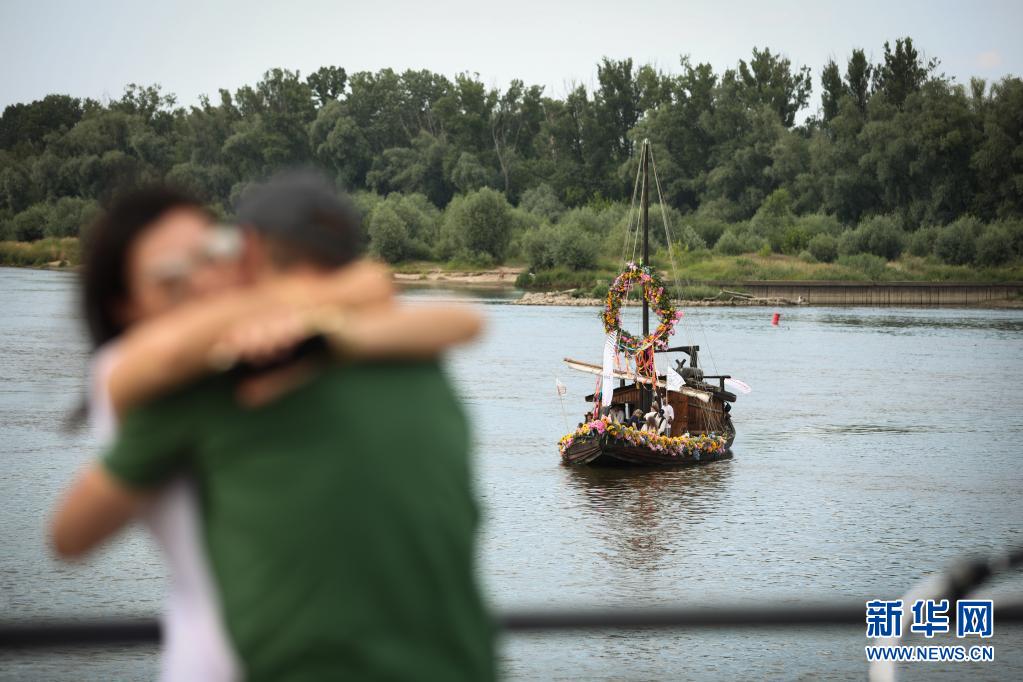 6月26日,波蘭首都華沙舉行傳統(tǒng)的夏日文化娛樂活動時,一對情侶在河邊擁抱。