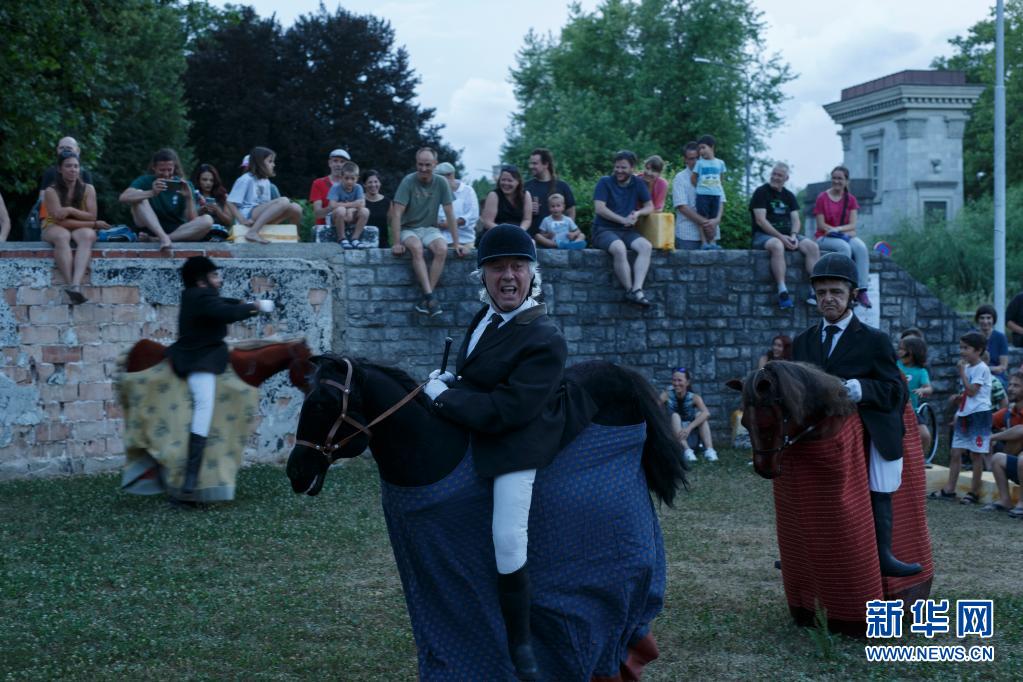 6月30日傍晚,藝術(shù)工作者在斯洛文尼亞首都盧布爾雅那進(jìn)行街頭戲劇節(jié)表演。