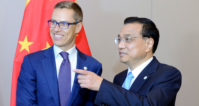 李克強(qiáng)表示,中芬關(guān)系十分牢固,在中國同西方國家關(guān)系中走在前列。兩國經(jīng)濟(jì)互補(bǔ)性強(qiáng)。雙方應(yīng)擴(kuò)大雙向投資,推進(jìn)科技創(chuàng)新、生態(tài)環(huán)保、信息通信等領(lǐng)域的合作。[詳細(xì)]