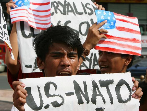 菲律賓民眾抗議多國部隊對利比亞進(jìn)行軍事打擊