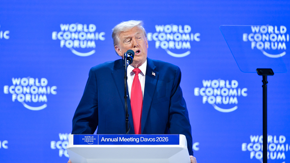 美國總統(tǒng)特朗普在世界經(jīng)濟論壇年會發(fā)表演講